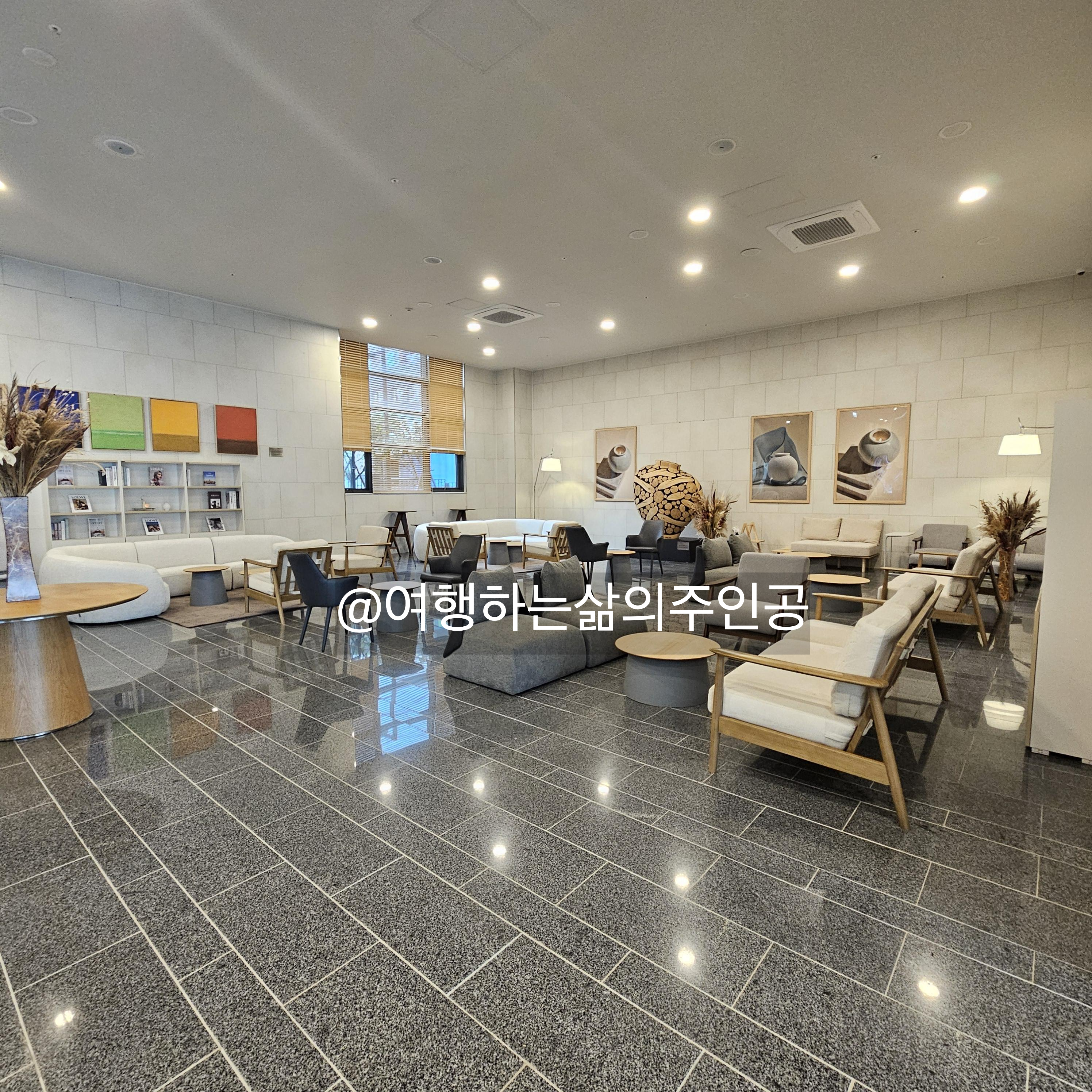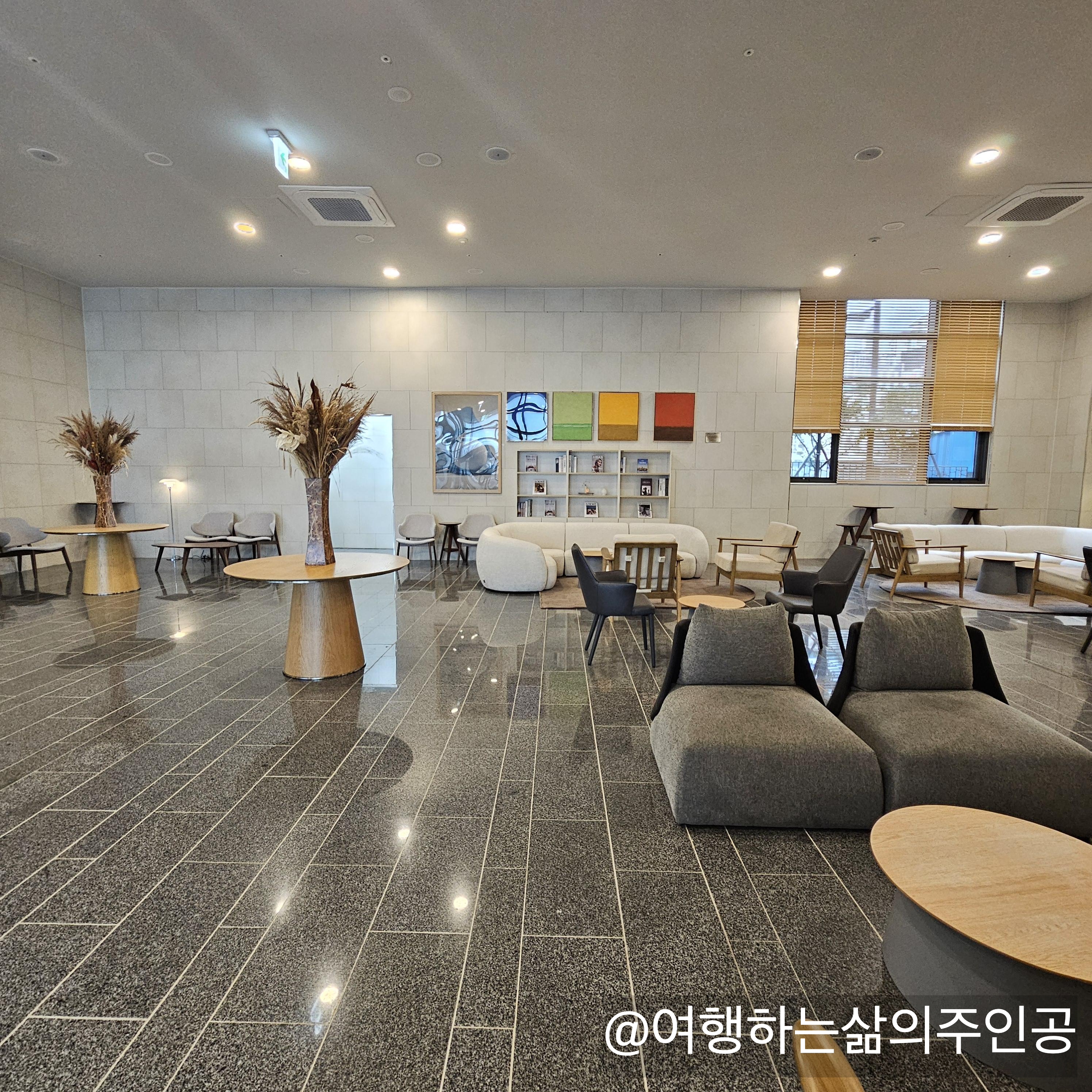 속초의 감성 숙소: 넓은 로비와 편안한 공용 공간